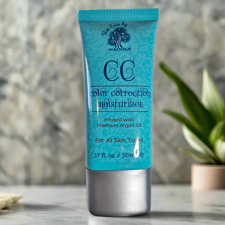 Achieve a flawless, even complexion with Madina's CC Cream, a color-correcting moisturizer infused with premium Argan Oil. This versatile cream not only hydrates your skin but also provides subtle color correction, addressing imperfections such as redness, dullness, and uneven skin tone. Its lightweight formula ensures a natural finish, making it an essential addition to your daily beauty routine.